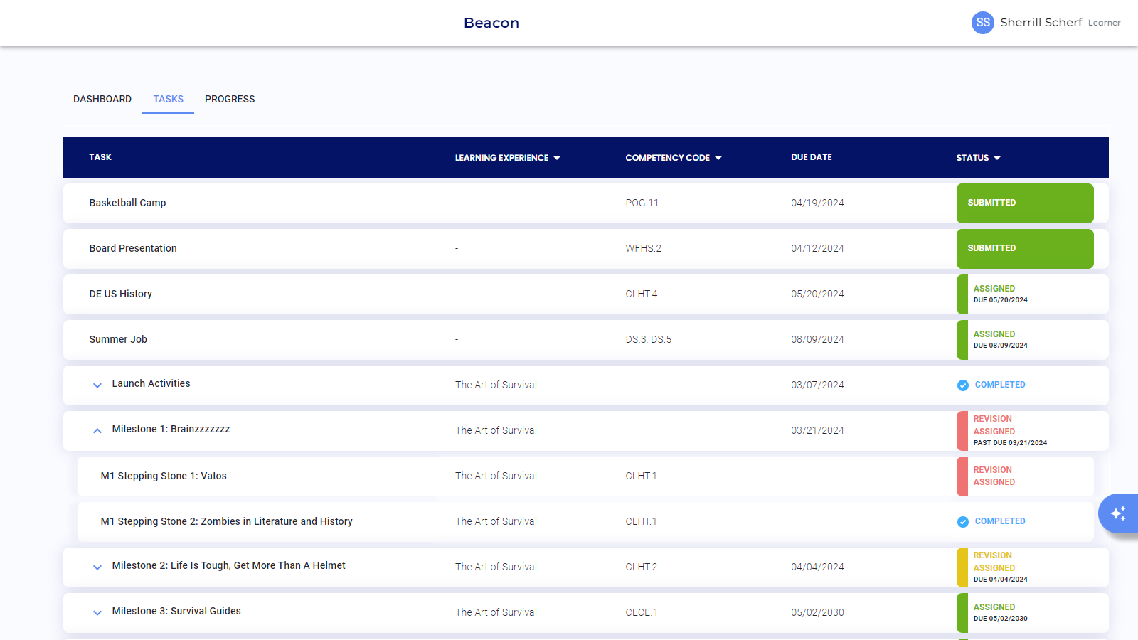 SOLUTION: Yes! Beacon allows you to track multiple types of learning targets (e.g., standards, competencies, badges) on a wide variety of scales (e.g., 1-4, 1-6, 1-12, Met/Not Met, Complete, Emergent/Developing/Proficient/Advanced, checkmark, emoji badging).